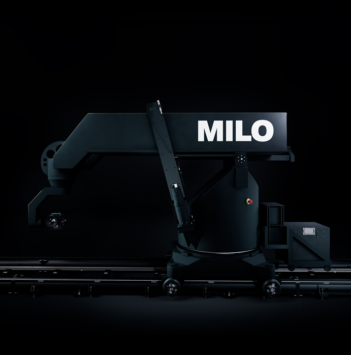 Its incredibly rigid structure allows it to do macro work as easily as large, live-action moves. It has excellent stability when starting and stopping quickly which helps when importing CGI moves. It has a secondary or "outer" arm which allows the camera to go from underslung to overslung in one continuous motion, maximizing vertical travel and enabling it to reach into small spaces such as car interiors. The Milo can take a wide range of camera packages from IMAX and 3D to HiDef and DSLR.